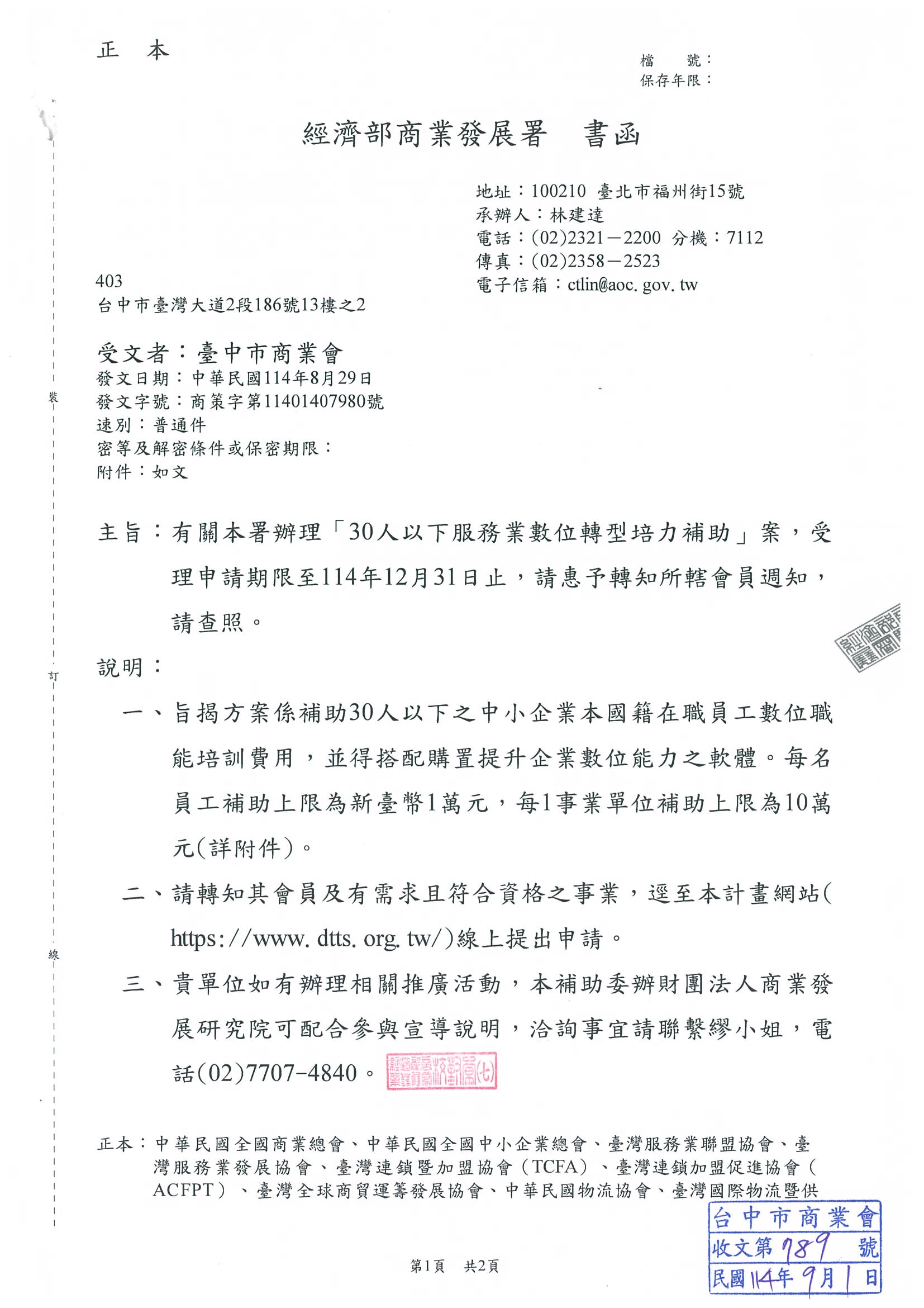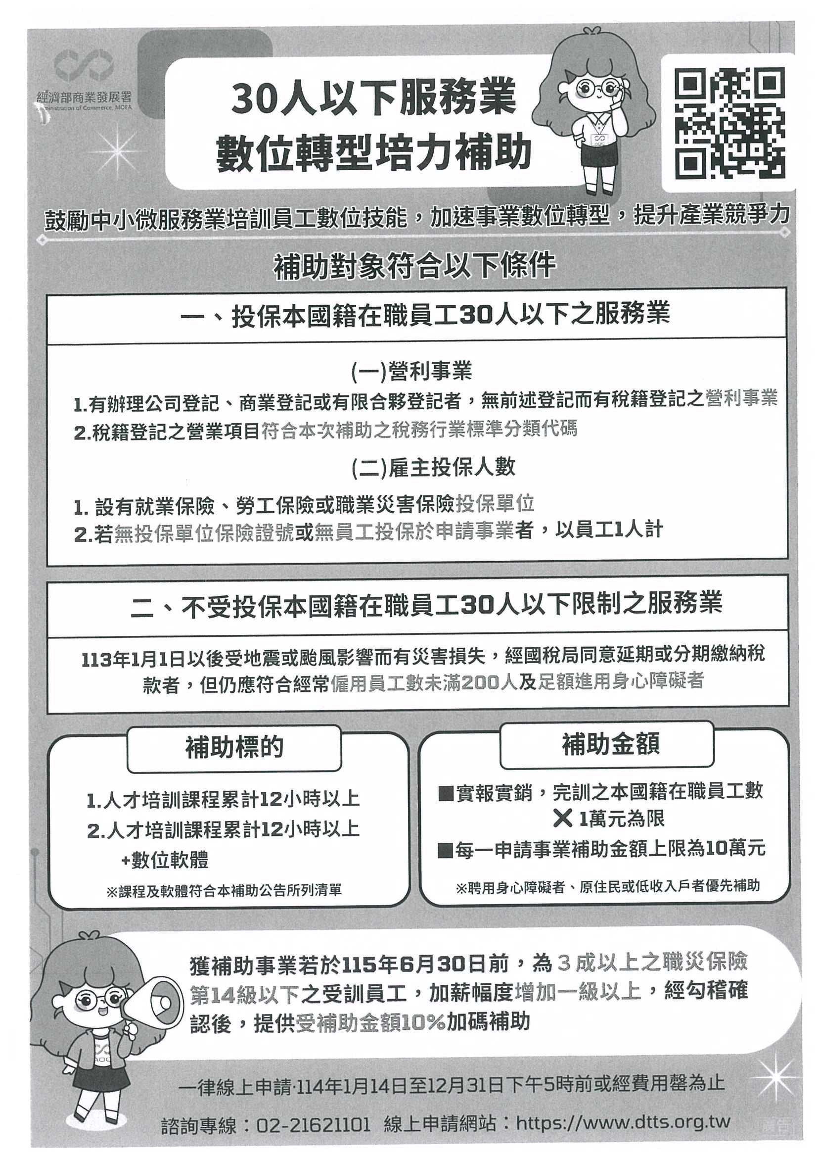 至114年12月31日止 經發署辦理【30人以下服務業數位轉型培力補助】