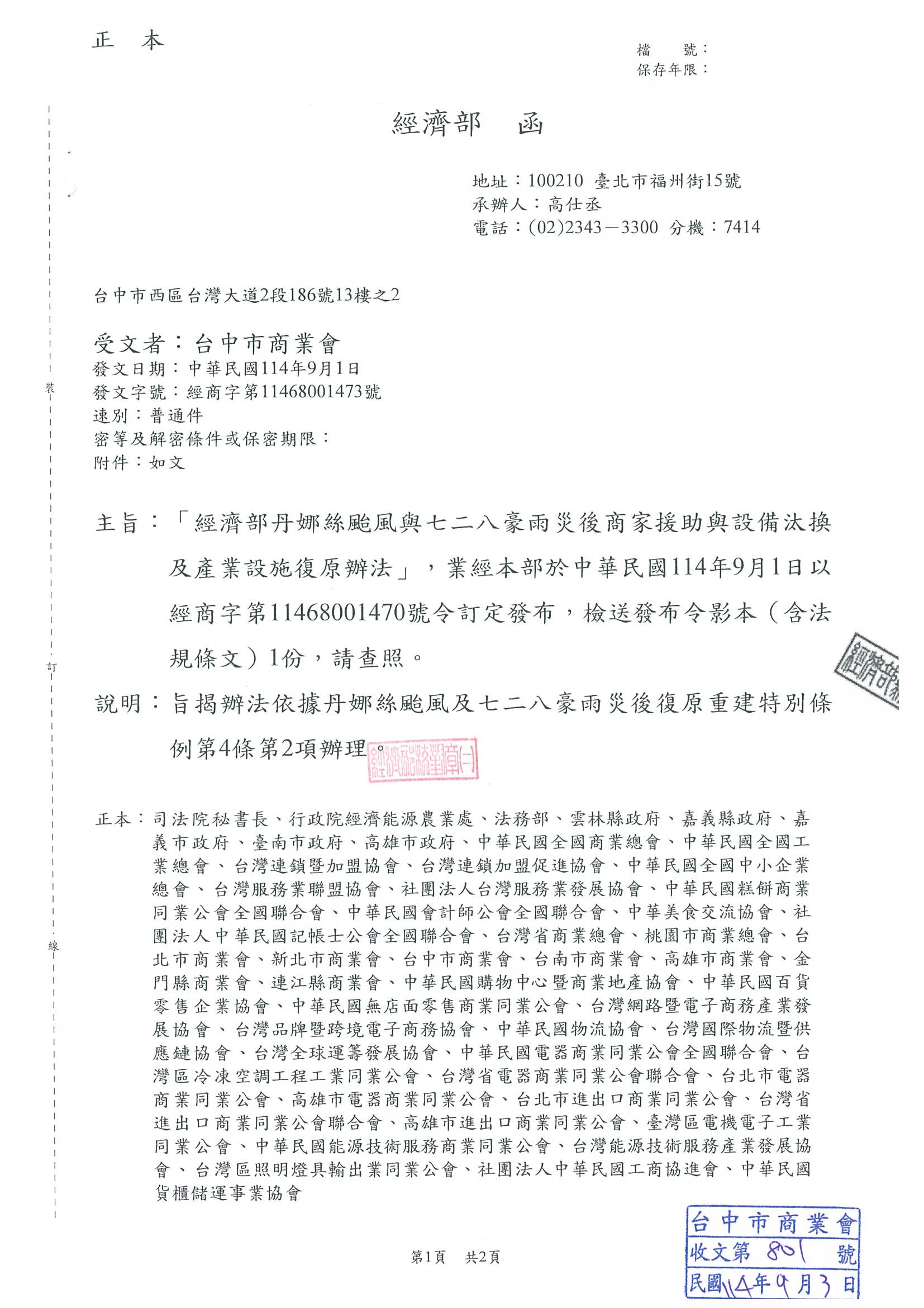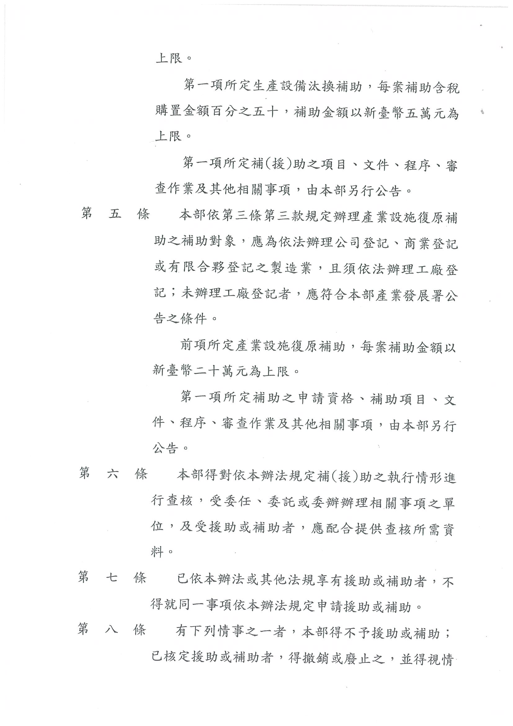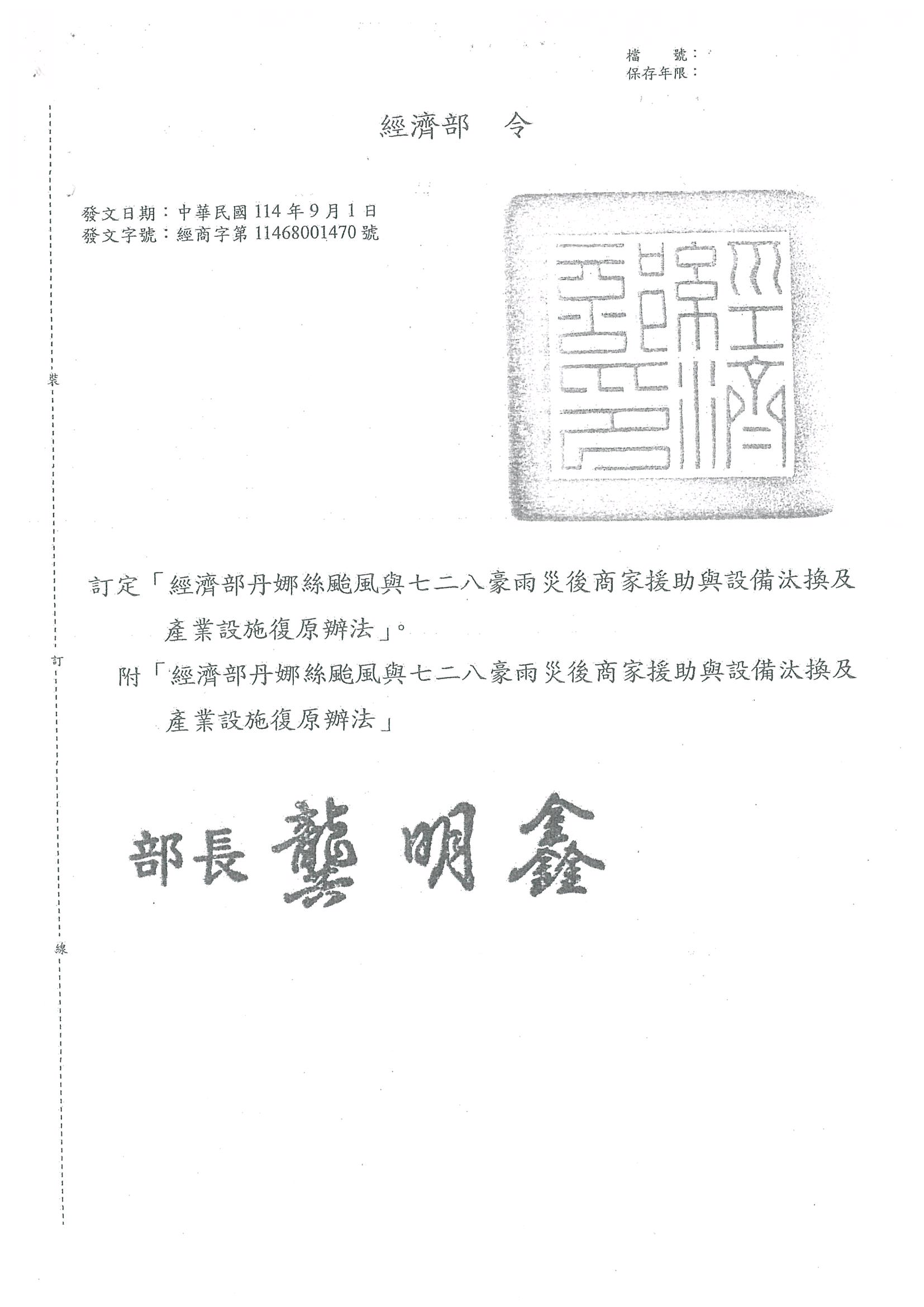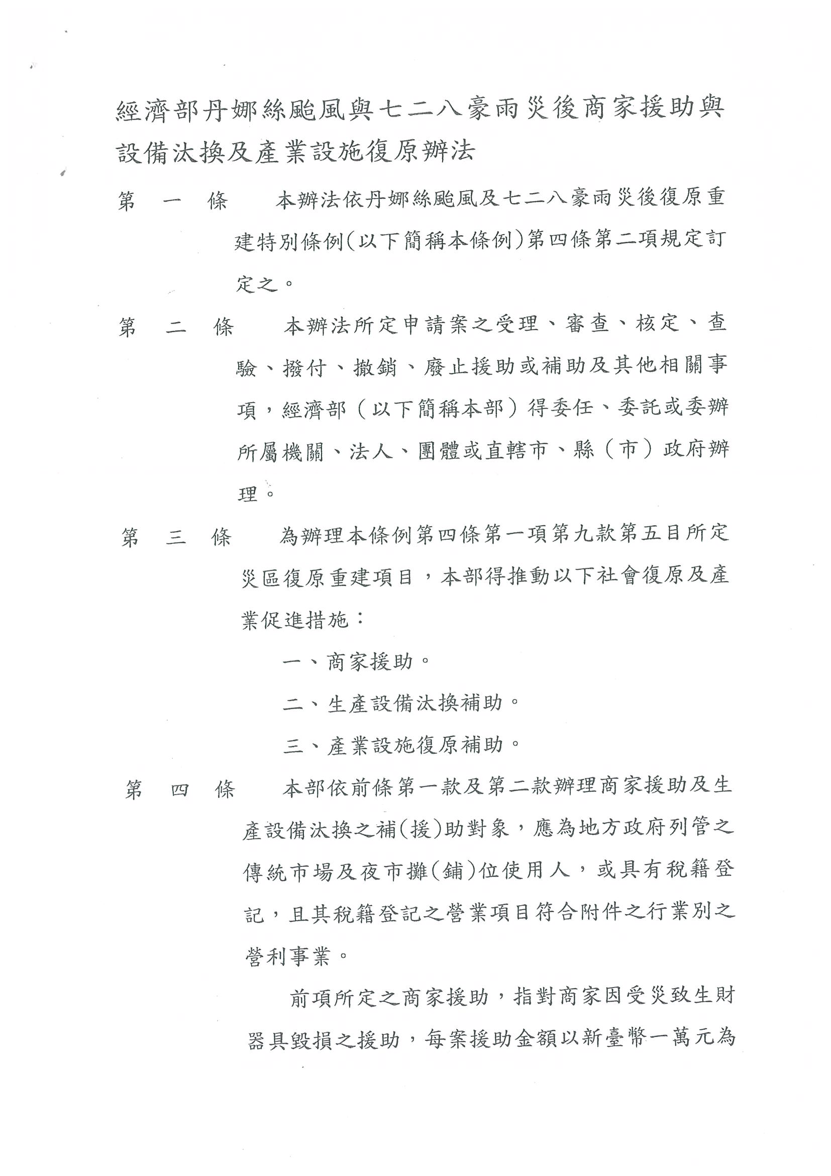 經濟部丹娜絲颱風與七二八豪雨災後商家援助與設備汰換及產業設施復原辦法