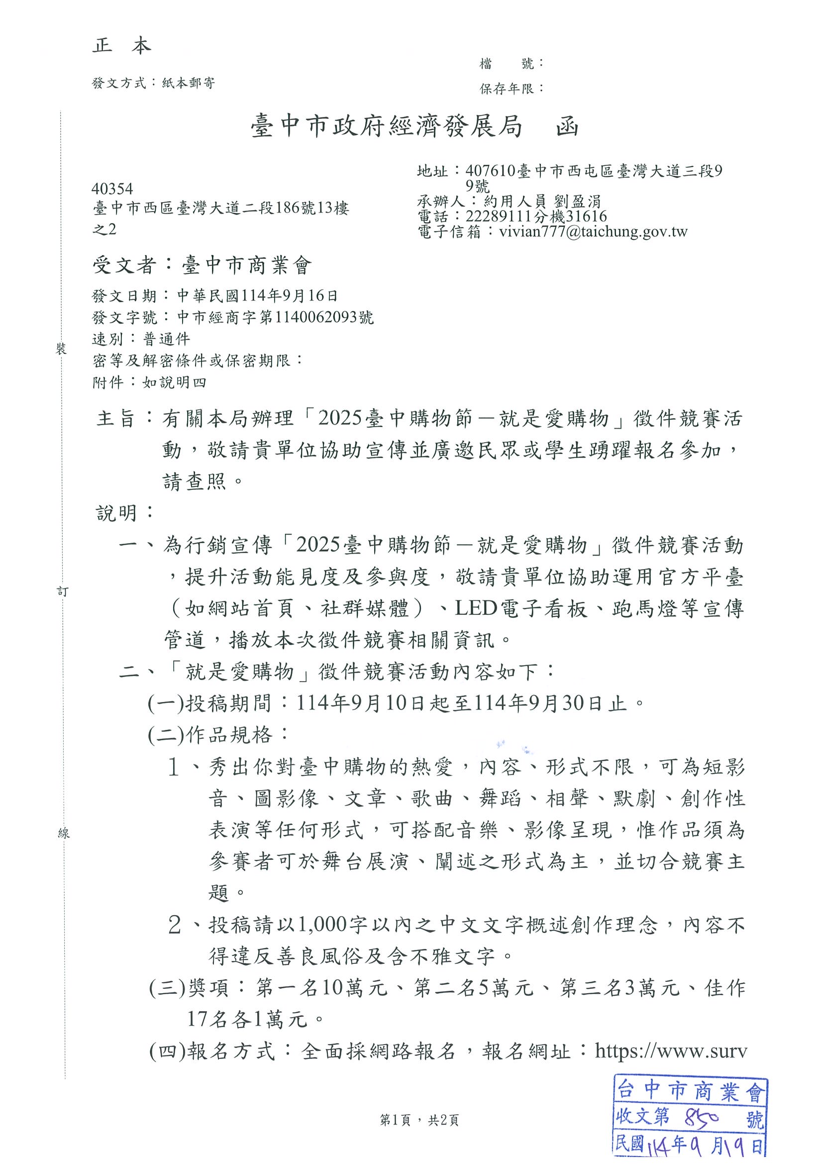 至9月30日止 經發局辦理【2025臺中購物節-就是愛購物】徵件競賽活動