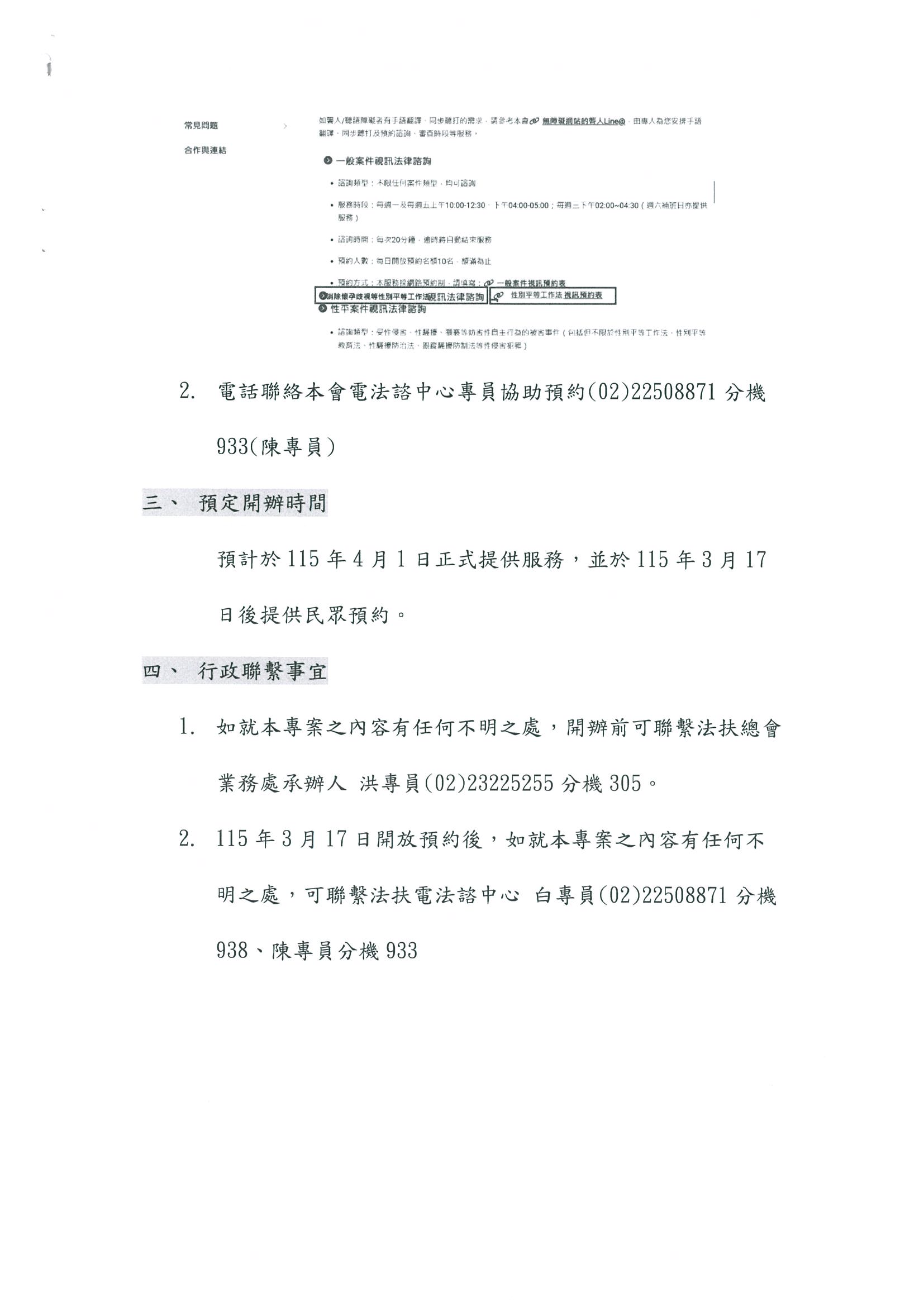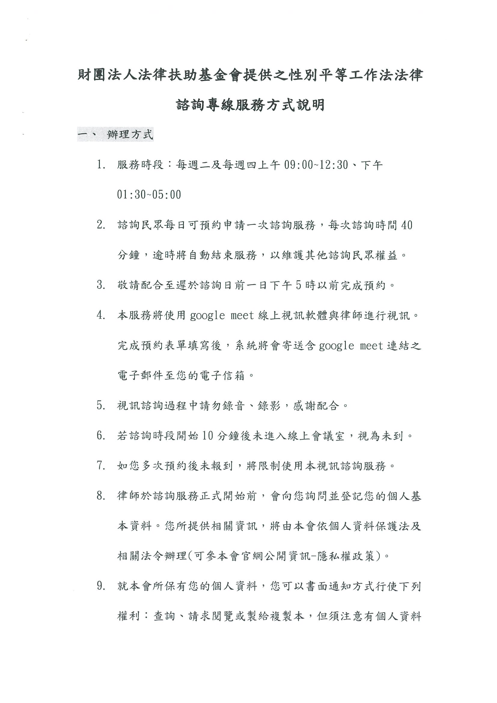 財團法人法律扶助基金會委辦[115年度性別平等工作法律視訊諮詢服務方式說明]