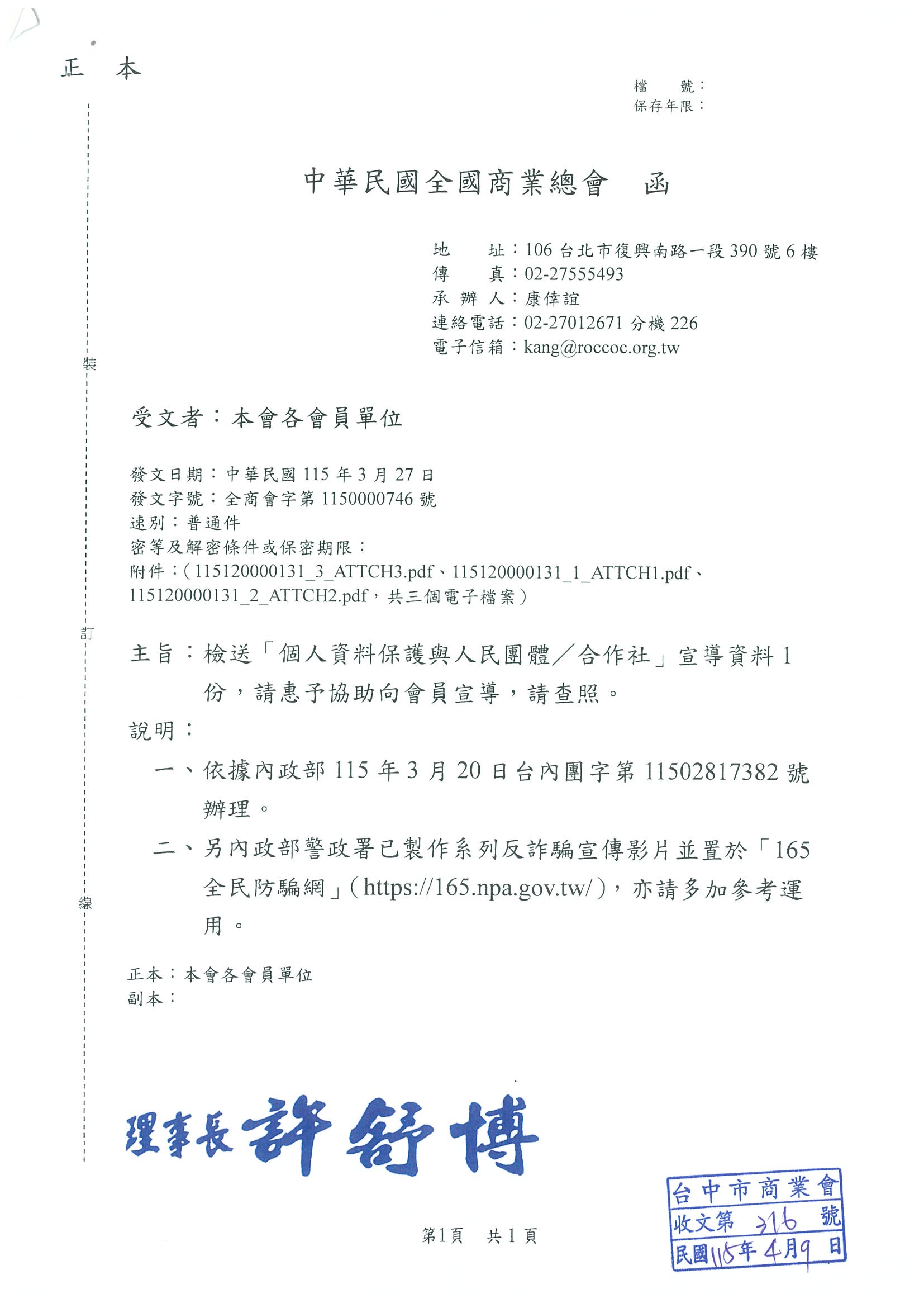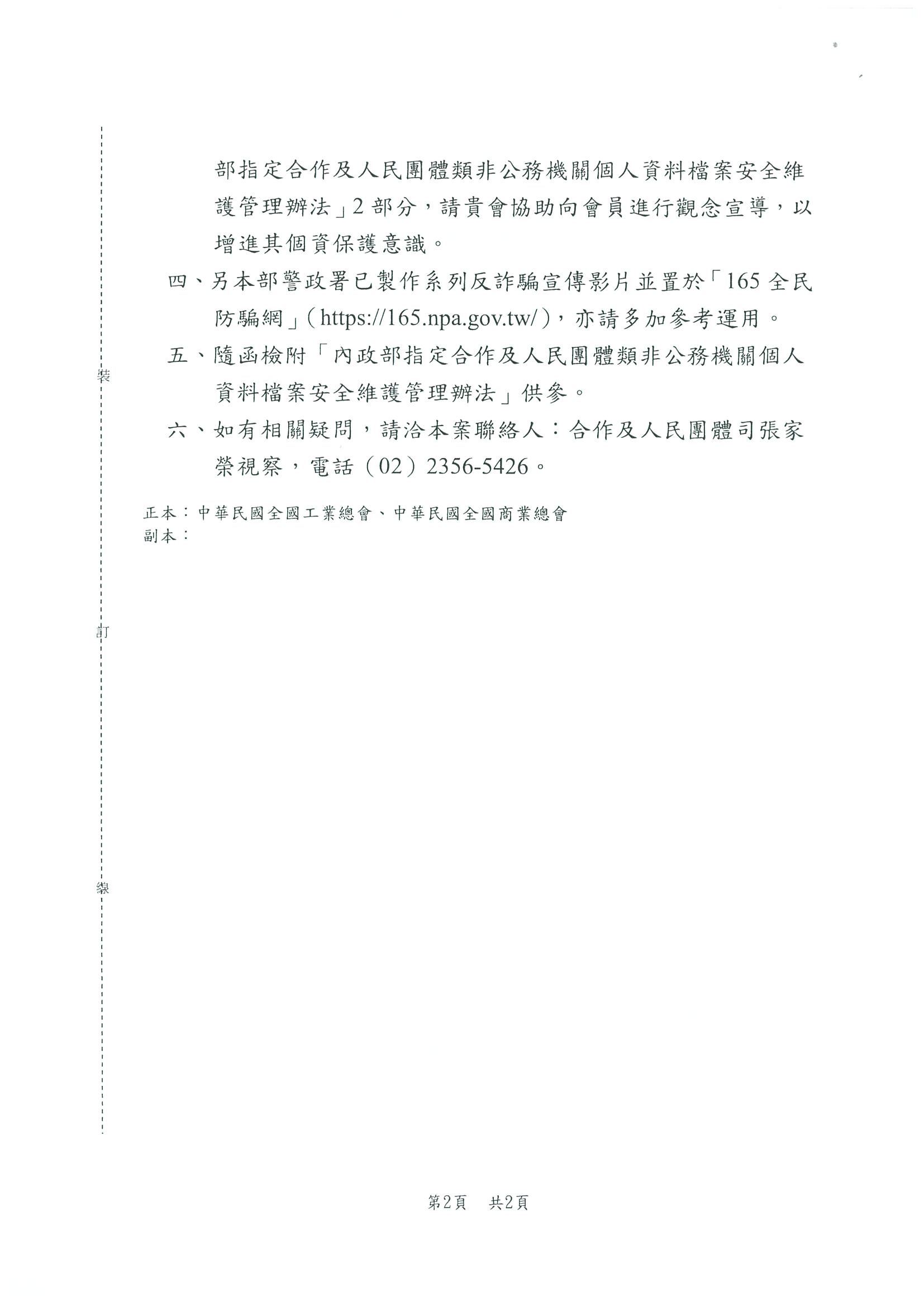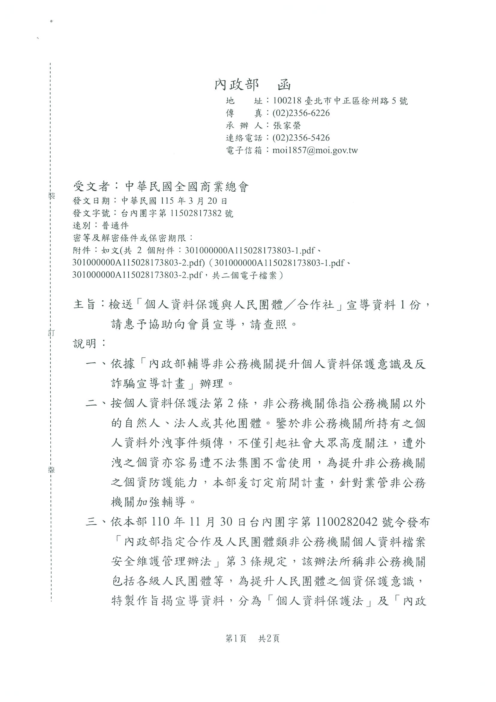 轉知內政部宣導資料【個人資料保護與人民團體/合作社】