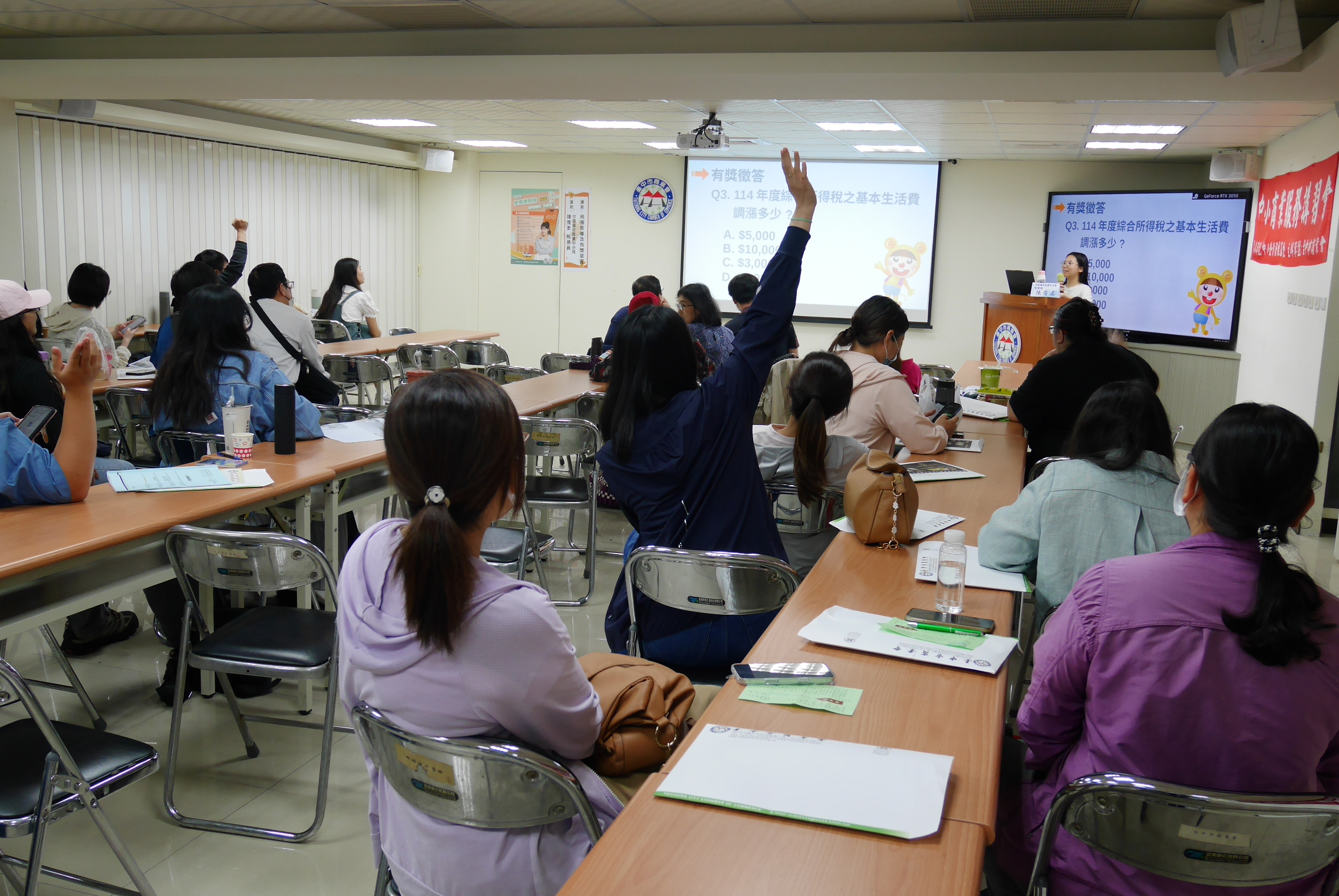 講習課程內容豐富,涵蓋「土地稅簡介與節稅要領」、「查定課徵營業人行動支付及多媒體資訊服務機構適用租稅優惠」、「營利事業所得稅結算申報錯誤樣態解析」,以及「稅務宣導及有獎徵答」等主題。由各單位專業稅務人員進行實務分享,提供與會者最新法規解讀與常見錯誤提醒,協助企業在申報過程中更為精準、合規。