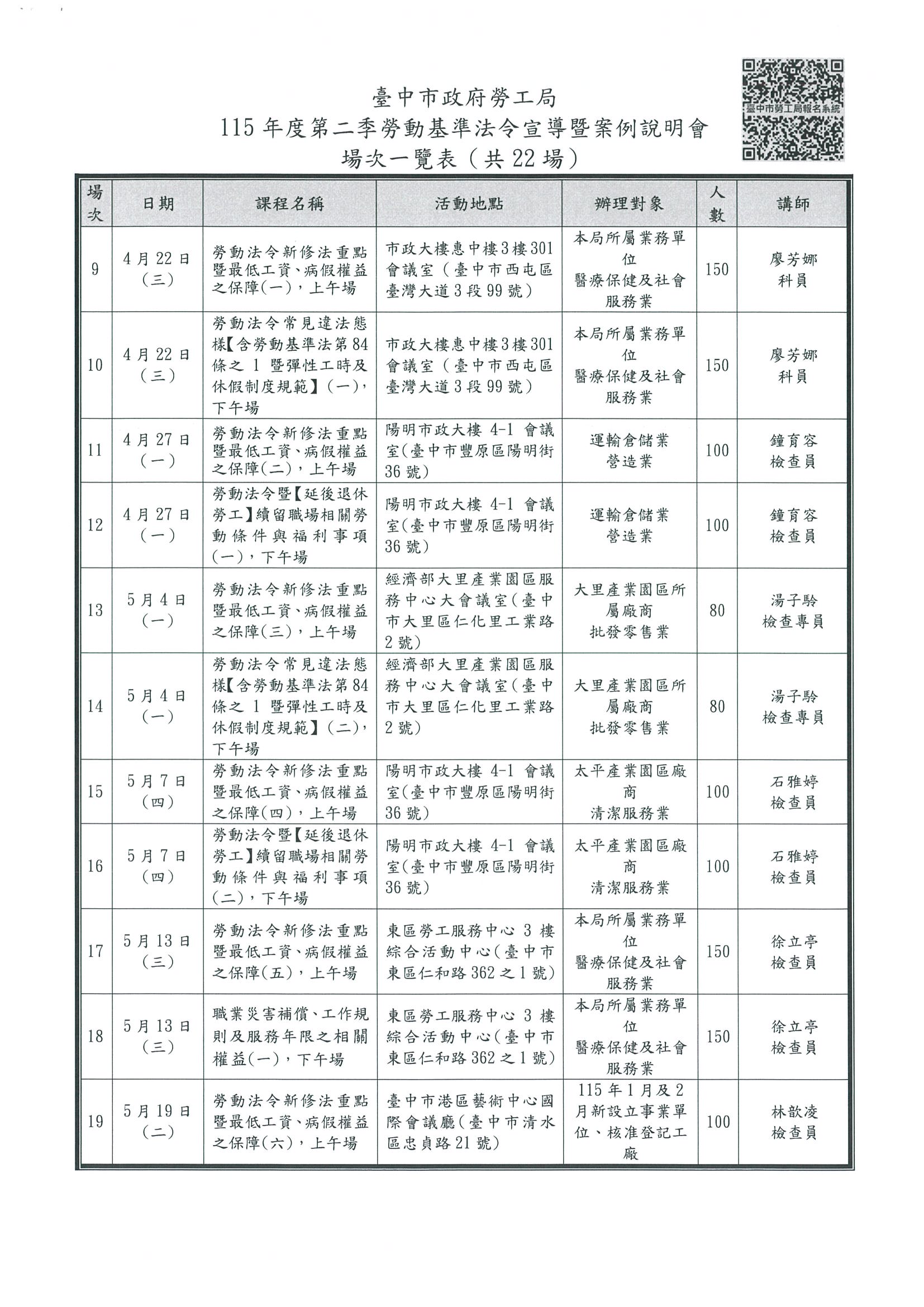 4月-月 勞工局舉辦[115年度第二季勞動基準法令宣導暨案例說明會]