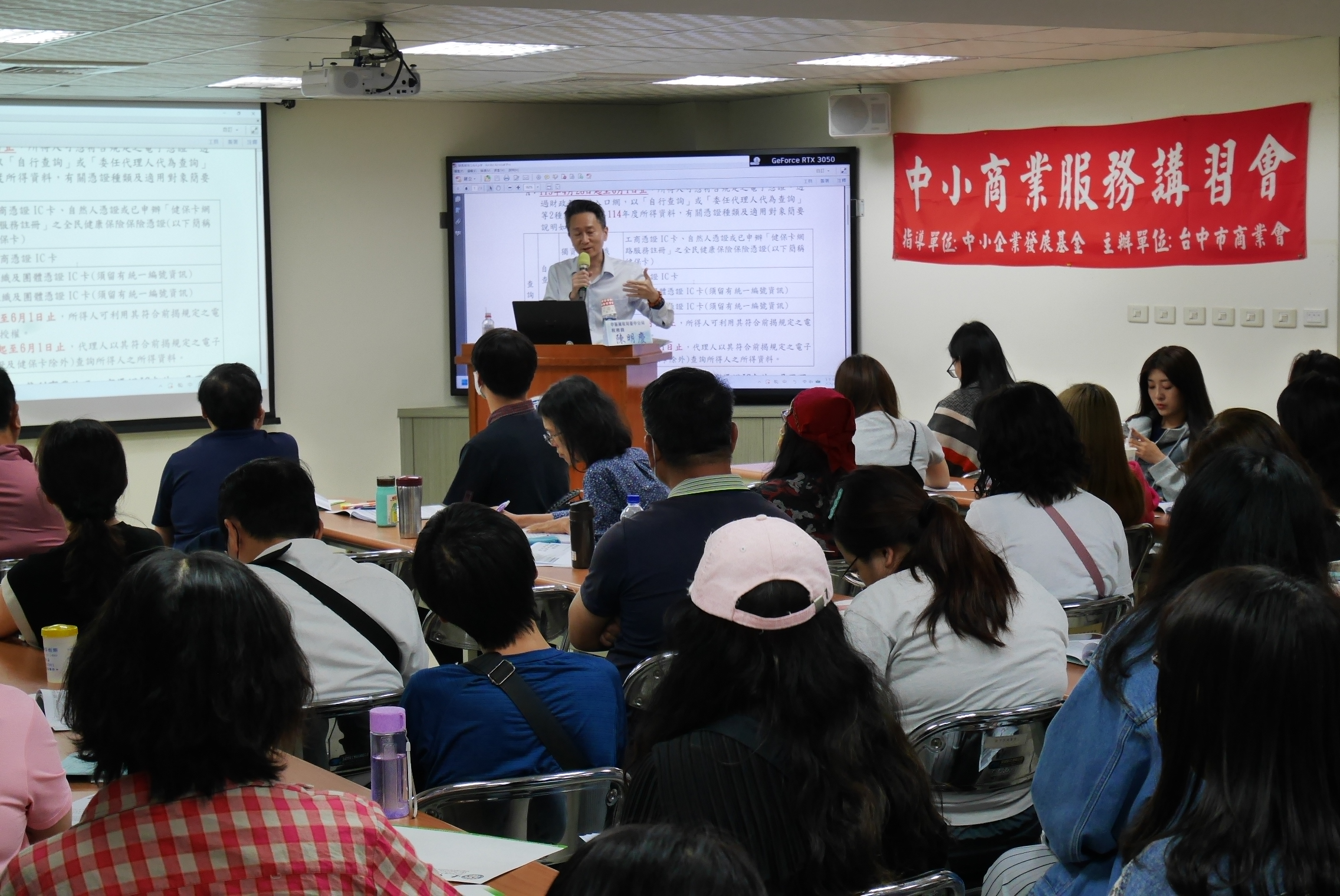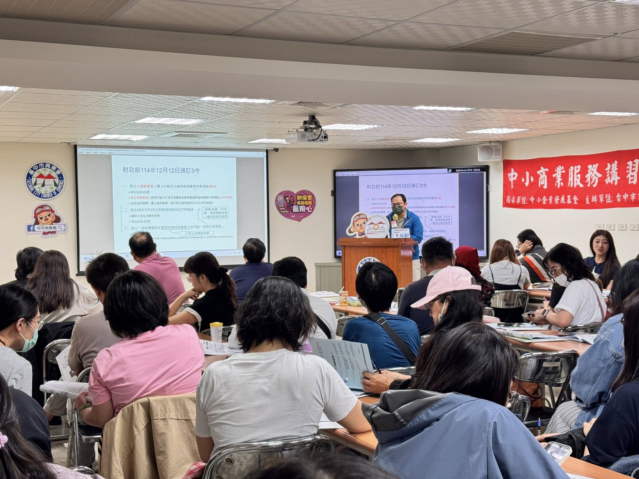 ►為協助企業掌握最新稅制與申報實務,邀集臺中市政府地方稅務局及財政部中區國稅局臺中分局專業講師,針對多項稅務重點進行深入說明,吸引眾多業者踴躍參與。