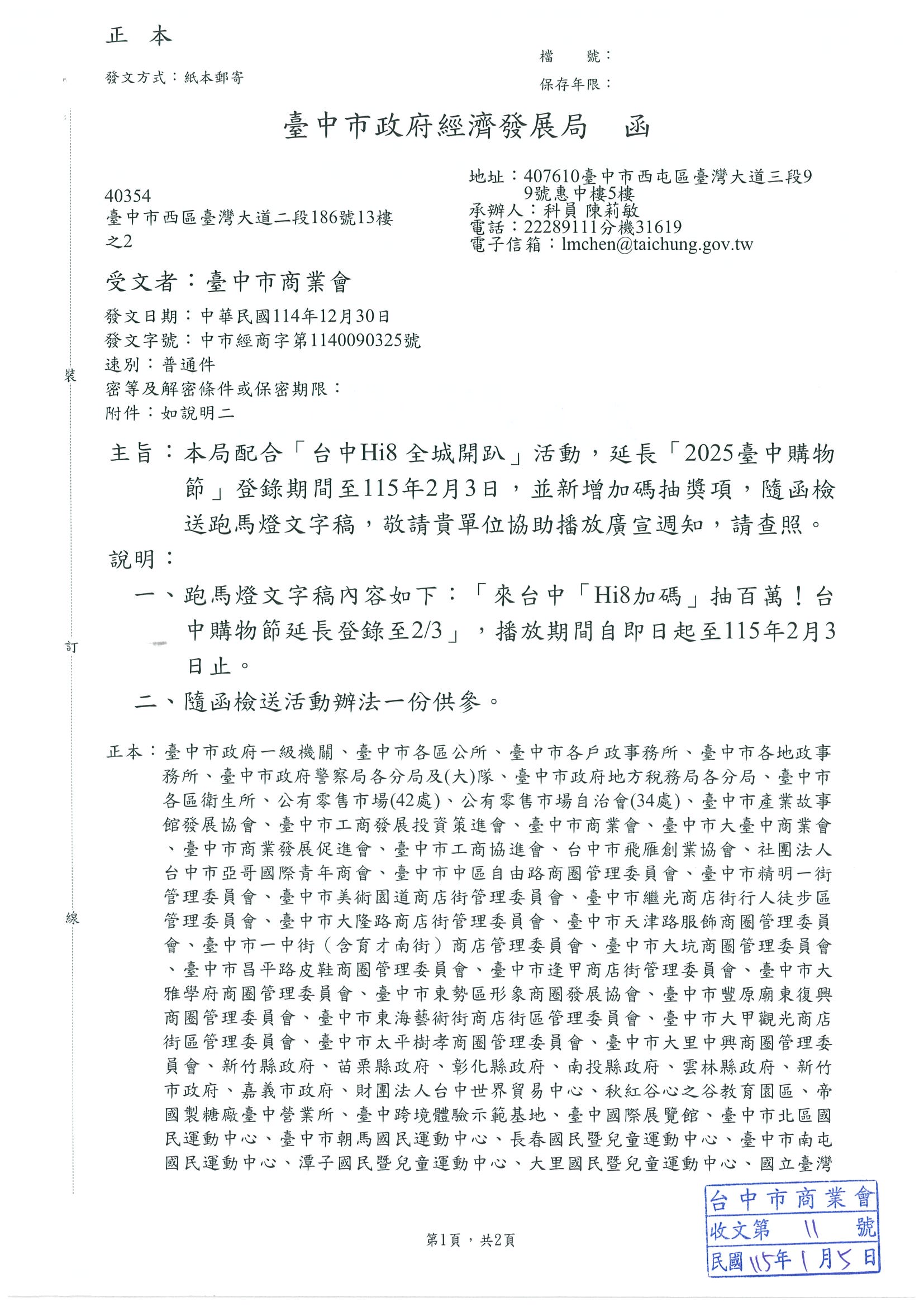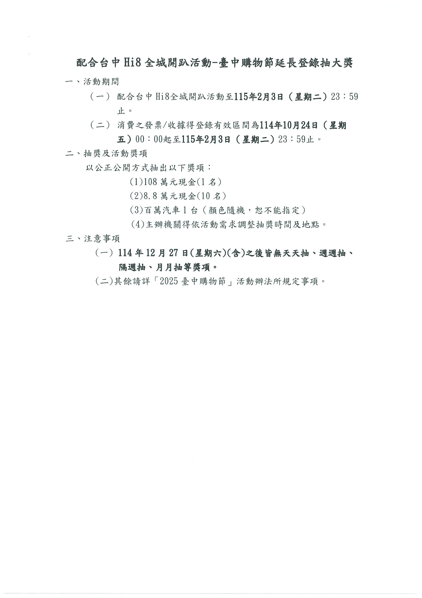臺中市政府經濟發展局為配合[台中Hi8 全城開趴]活動,延長[2025臺中購物節]登錄期間至115年2月3日