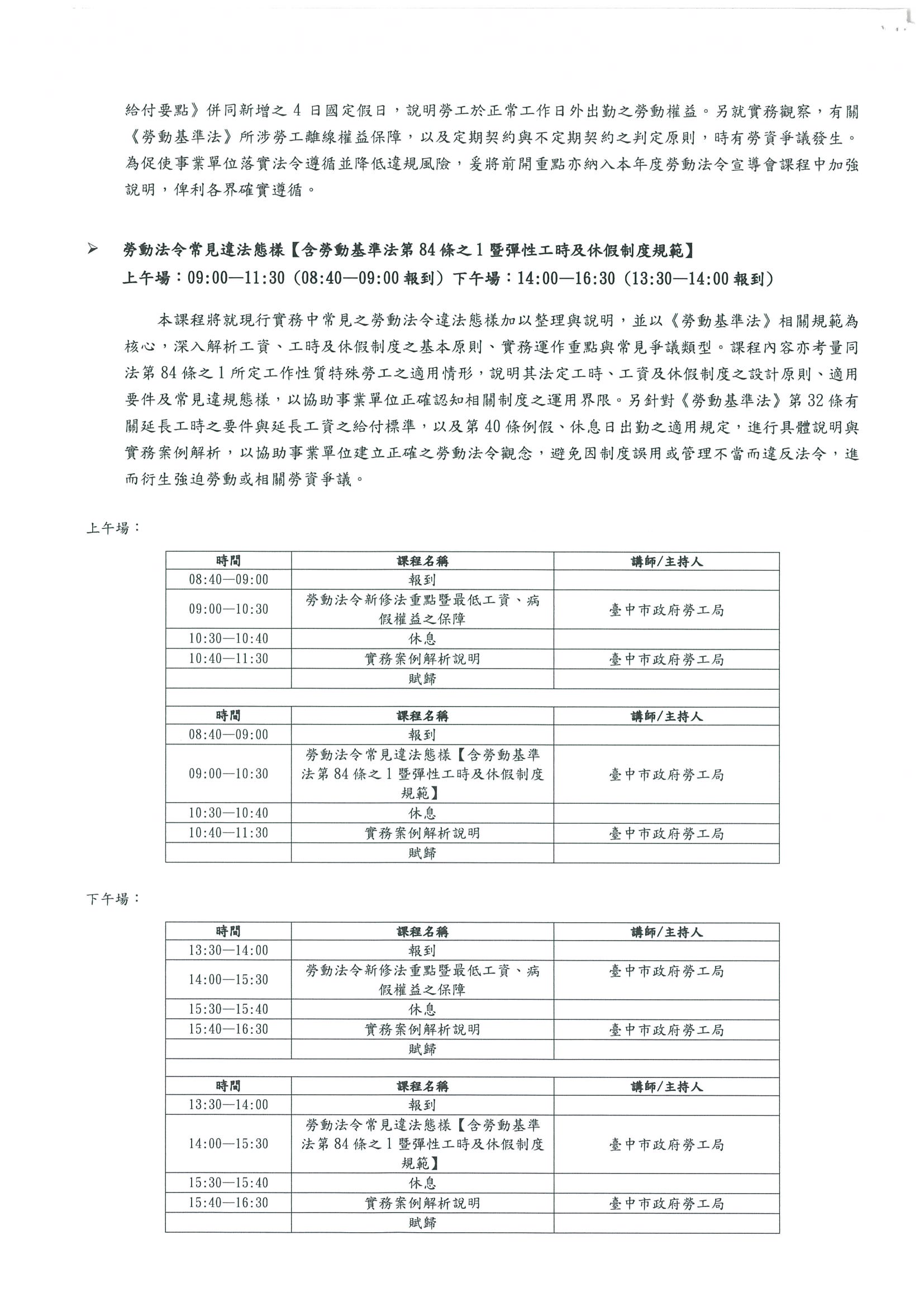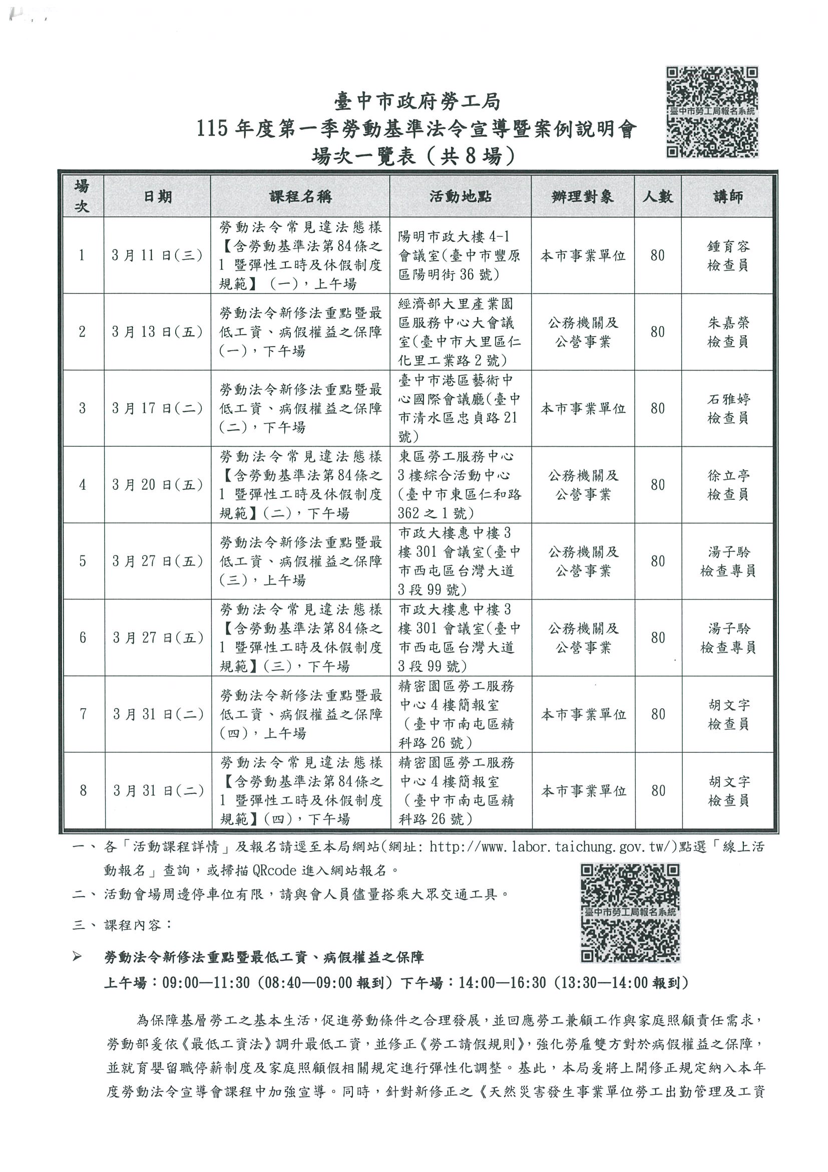 3月11日至31日止 勞工局舉辦【115年度第一季勞動基準法令宣導暨案例說明會】