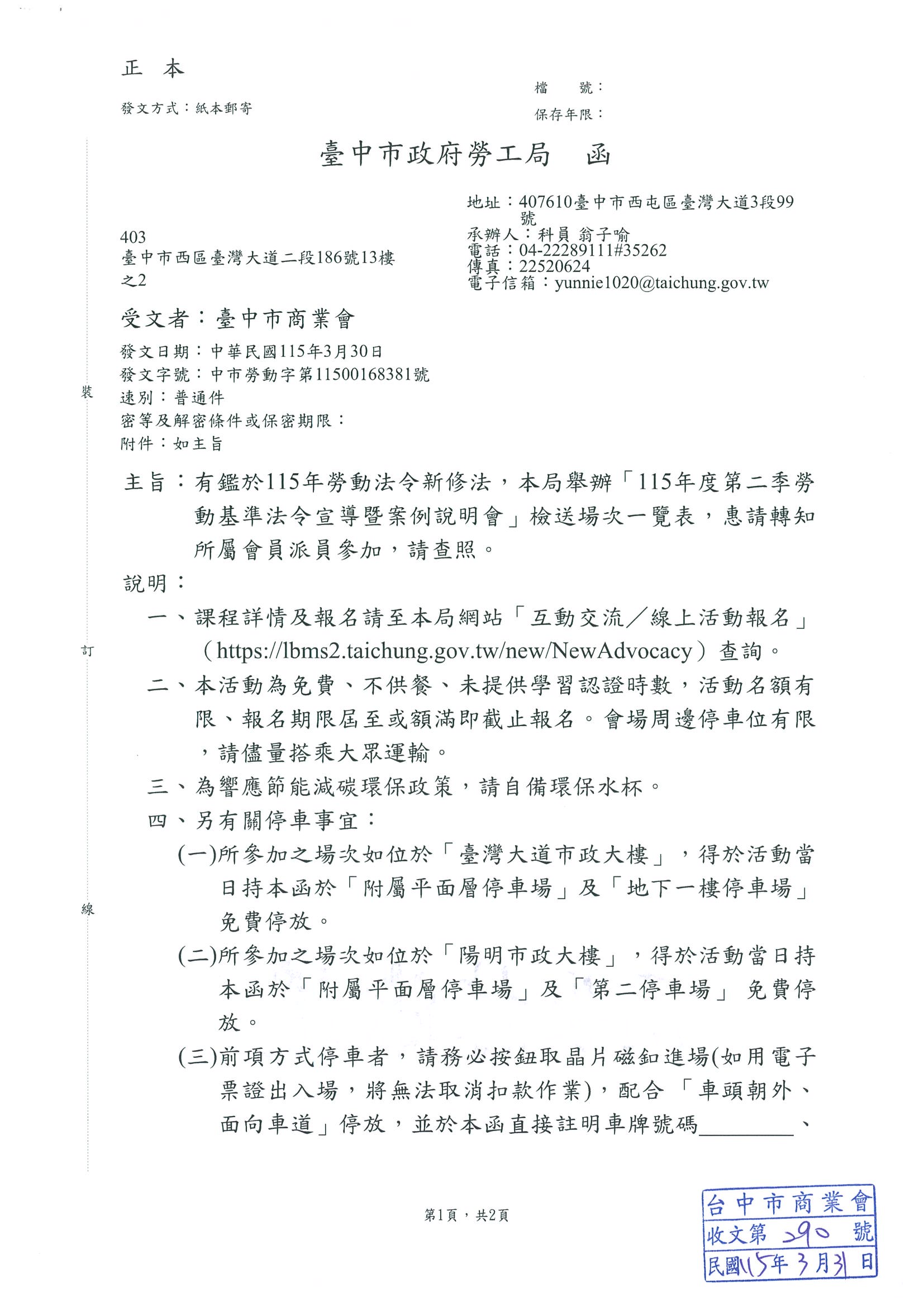 4月-月 勞工局舉辦[115年度第二季勞動基準法令宣導暨案例說明會]