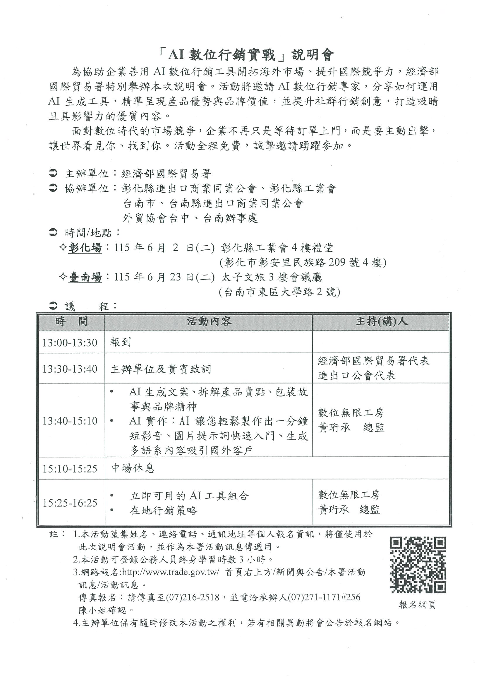 6月2日& 6月23日 經濟部國際貿易署辦理【AI數位行銷實戰】說明會